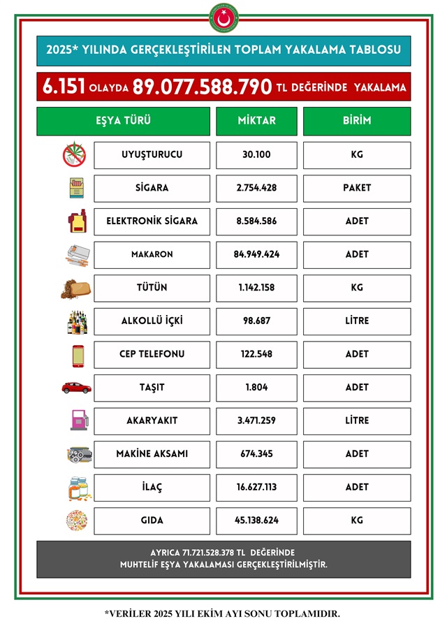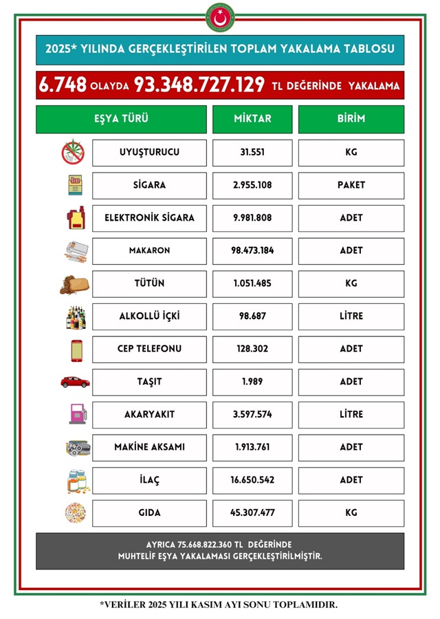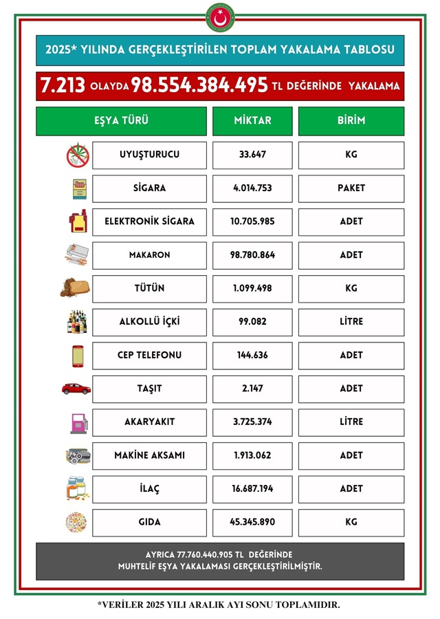 KAÇAKÇILIKLA MÜCADELEDE 2025 YILI ÖZETİ